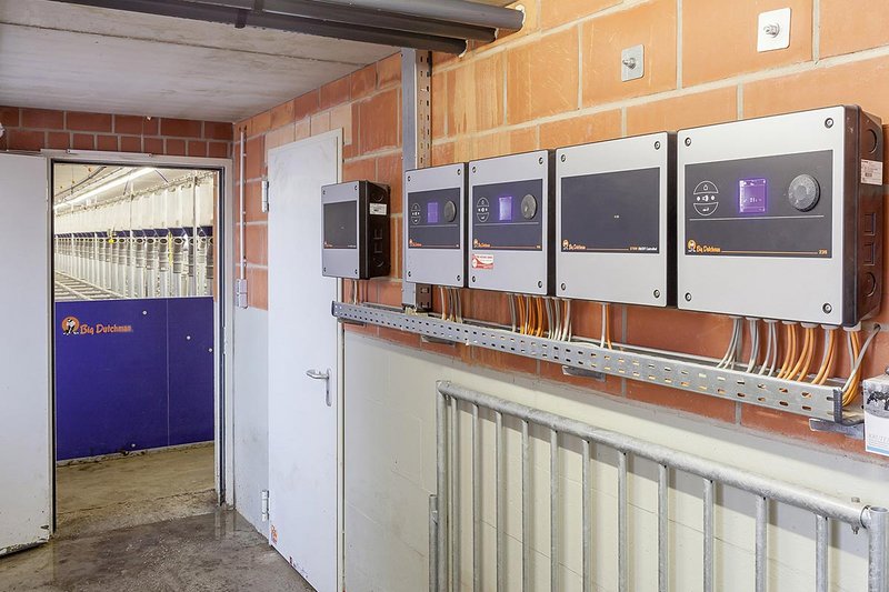 Un esempio della gamma di prodotti leader del mercato mondiale è il sistema elettronico di alimentazione per scrofe (ESF) Call-Inn pro. Il suo design soddisfa le richieste di Börde Porc al 100%. Call-Inn pro permette agli allevatori di combinare i vantaggi delle scrofe in gravidanza allevate in gruppi con il sistema di alimentazione perfettamente adattato alle esigenze di ogni singolo animale. Big Dutchman ha installato un totale di 24 stazioni ESF nell’area di gestazione. Ulteriori tre stazioni le ha installate nell’area dei suinetti in modo tale da abituarli. Ogni stazione Call-Inn pro alimenta un gruppo di 60 scrofe. Il sistema è completamente integrato nel software di controllo all’avanguardia BigFarmNet.